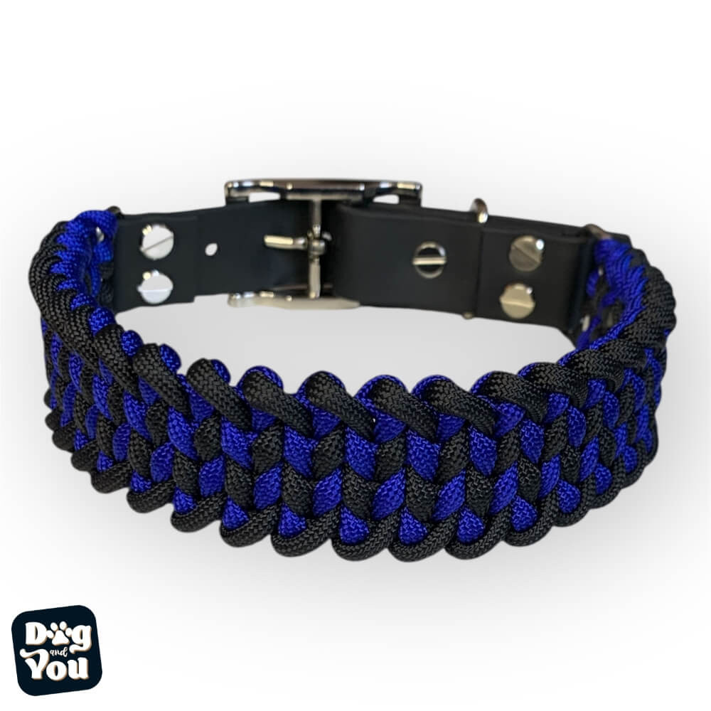 Duci paracord kutya nyakörv Fekete- Electric Kék