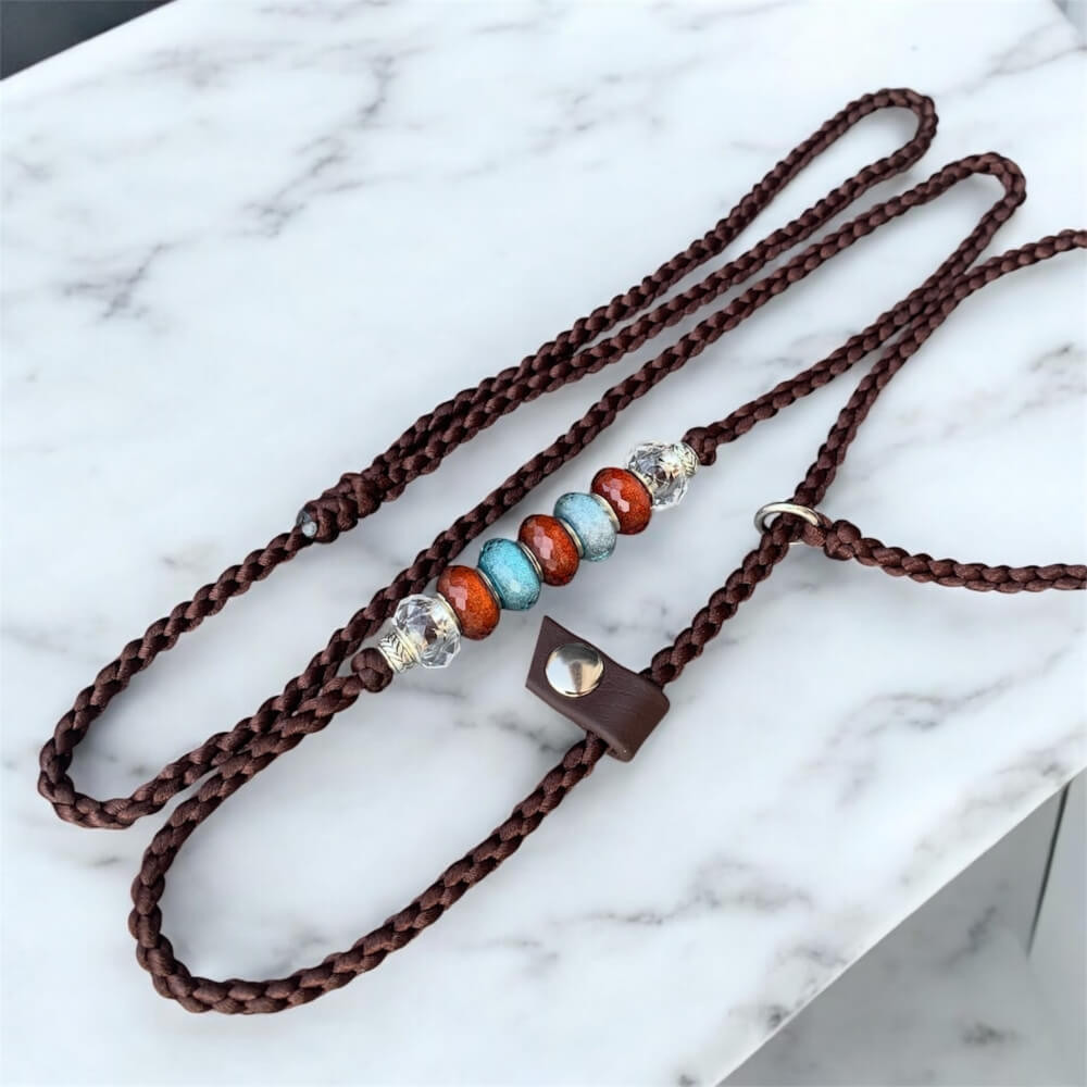 Selyem felvezető póráz retriver típusú 4mm Gyöngyös Barna